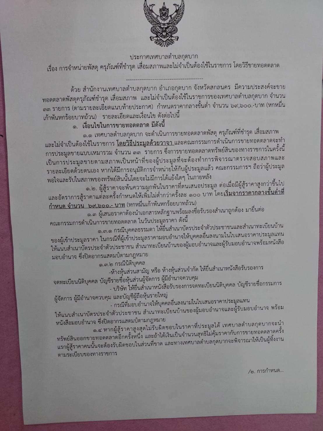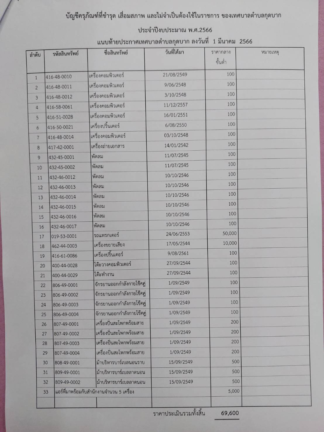 ประกาศจำหน่ายครุภัณฑ์ที่ชำรุดเสื่อมสภาพ